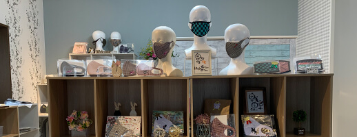 SHOPでは人気のアニメのマスクや、オーロラ糸で刺繍を施したマスク、抗菌生地で制作したマスクなど、